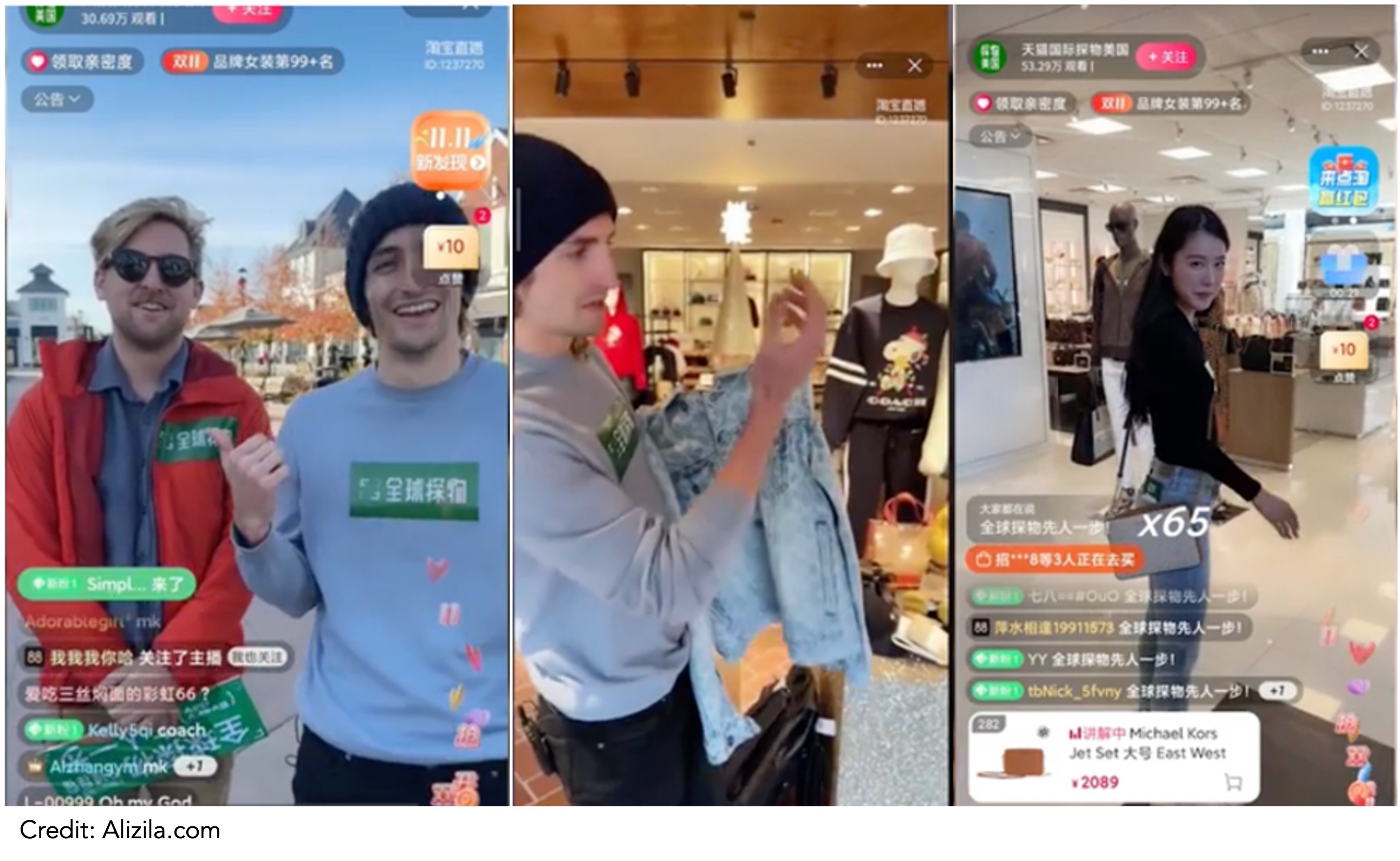 “Livestreaming has become a storytelling format for delivering product information. Consumers are getting used to longing for a particular product through content consumption” said Chui Xue, President of Industry Development and Operation Center of Taobao and Tmall. Livestreaming has also become a vehicle for delivering great customer experience and promoting live interactions that engage people and inspires them to stay on the shopping platform longer. This year, we saw a diversification of livestreaming content from celebrity live, KOL live, shop live to live Q&A discussions that encourage netizens to participate and win instant shopping rewards. Even the premier US outlet mall, Woodbury Common, livestreamed Chinese customers into the outlet to browse the mall’s stores and buy items directly from the mall. Mandarin-speaking French KOL duo XinShiDanDan hosted the livestream.